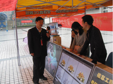 4月19日,我院进行2014年单招考试,按学院招生就业处安排,信息工程分院承担了考生家长接待与咨询工作。借此机会,信息工程分院在南校区水善厅门前设立了三个宣传、接待与咨询摊位,并对分院动漫设计与制作专业学生动漫作品进行了现场展览,同时对学生动漫CG作品在电子大屏幕进行展播。