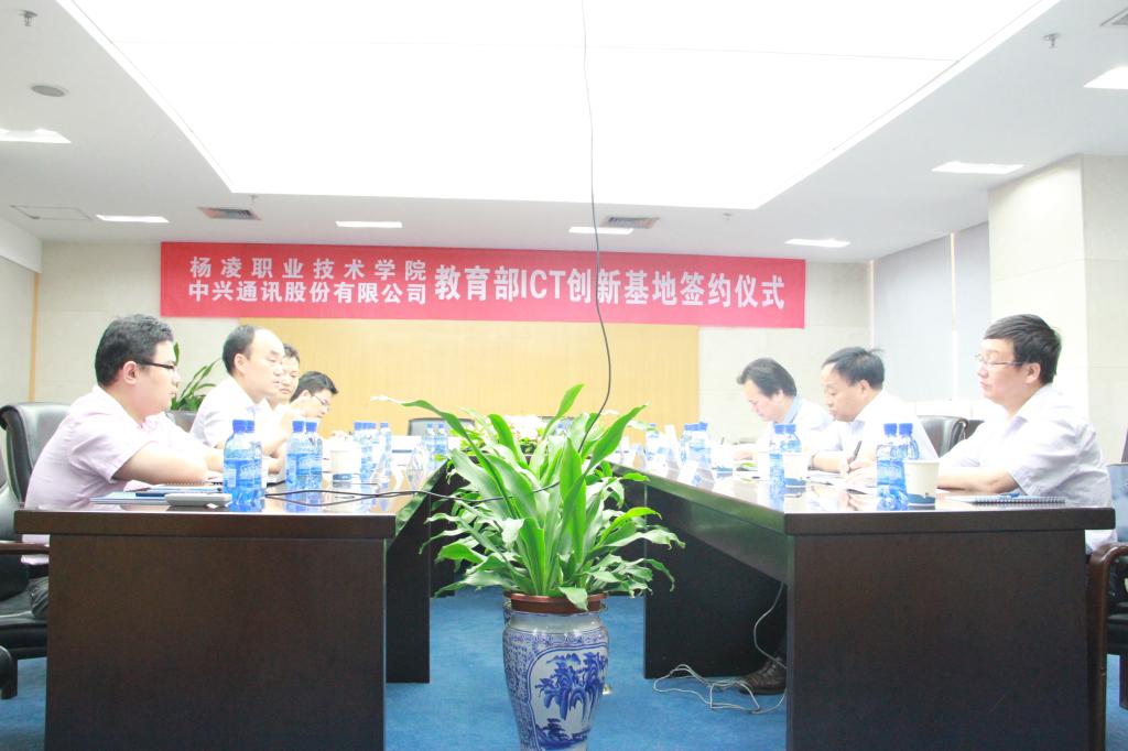 6月27日,经双方友好协商,杨凌职业技术学院院长王周锁代表我校与中兴通讯股份有限公司教育合作中心总经理张勇先生在中兴通讯总部共同签署了合作共建协议。中兴通讯教育合作中心开发部部长胡佳及我院计财处、信息工程分院负责人等出席了签字仪式。