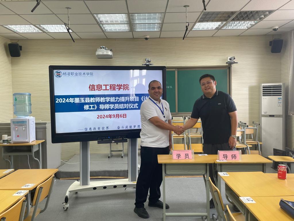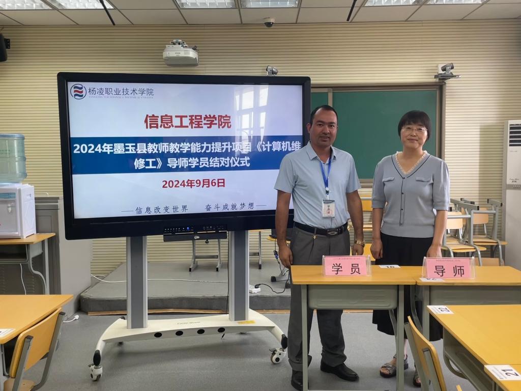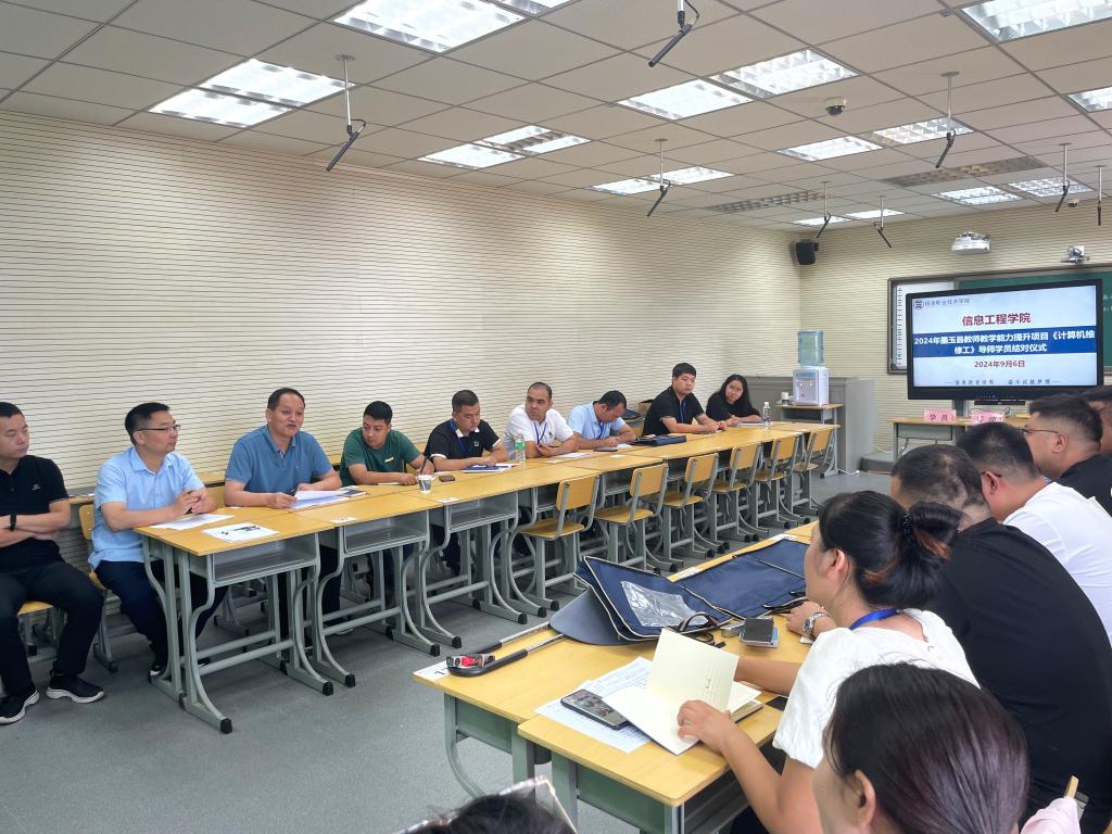 9月6日上午,信息工程学院在醒钟楼D座628举行2024年墨玉县教师能力提升计算机维修项目导师学员结对仪式,学院院长陈高锋、副院长熊刚、网络教研室主任冯春卫、动漫教研室主任黄婉林、教师代表以及墨玉县16位学员等参加,仪式由陈高锋主持。