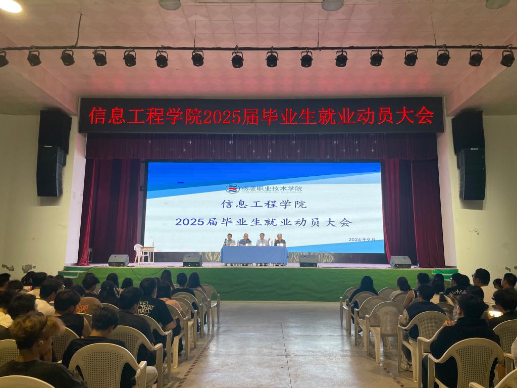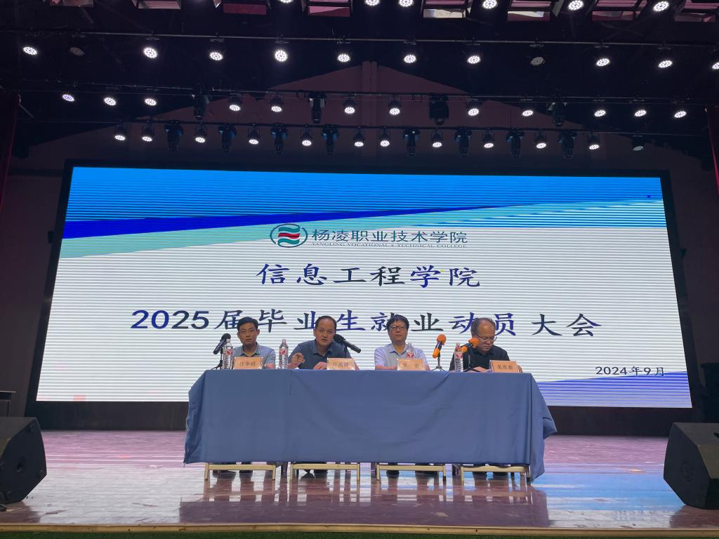 为帮助我院2025届毕业生更好地规划职业发展,提升就业竞争力,信息工程学院于2023年9月23日在学校一卡通中心召开2025届毕业生就业动员大会,学校招就处处长李岩、学院党总支副书记吴高潮、院长陈高锋、学生工作办公室主任任争峰、就业辅导员王昊宇、李宣荣出席大会,2025届全体毕业生参加。动员大会由学院院长陈高锋主持。
