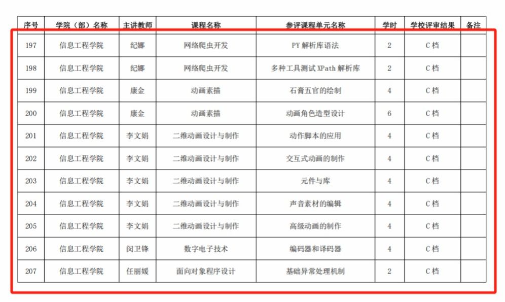 信息工程学院将以此为契机,充分发挥“金课”在教育教学改革、师资队伍建设等方面示范引领作用,深入落实新时代教育教学改革创新要求,不断提高课程建设的针对性和吸引力,切实发挥“金课”在落实立德树人根本任务中重要作用,持续深化教育教学改革,努力提高课程教学质量,大力推进学院“金课”建设高质量发展。