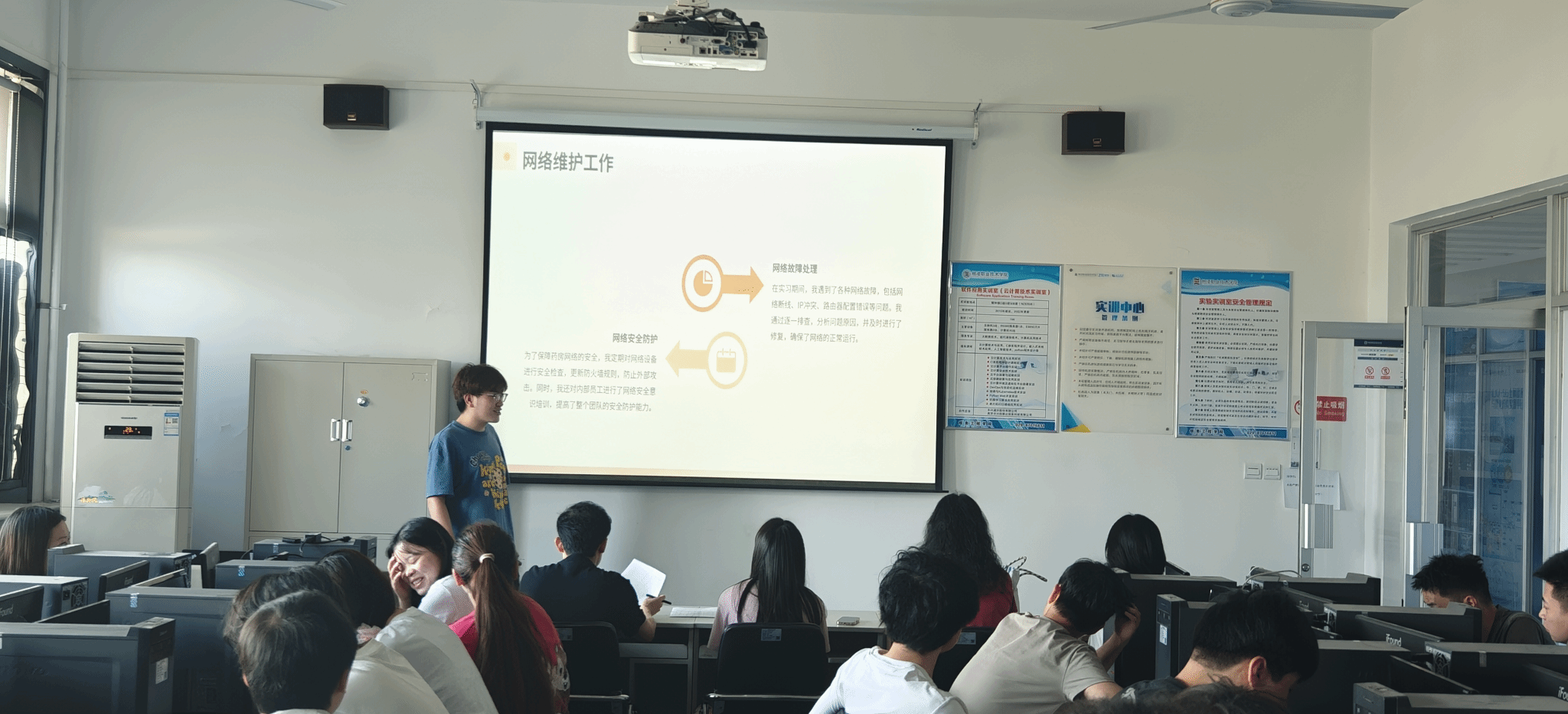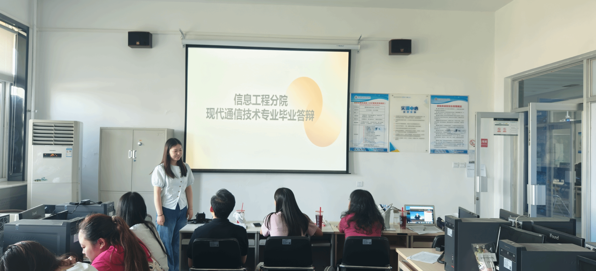 2025年6月11日上午,信息工程学院2025届现代通信技术专业毕业答辩暨岗位实习总结大会在醒钟楼NOD508教室举行。通信技术教研室全体实习指导教师与45名优秀实习生代表共同参加了本次答辩。