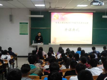 杨凌职业技术学院信息工程分院入党积极分子党课开课典礼与58日下午7点在NOB103教室进行,信息工程分院学工办主任吴高潮老师出席本次开课典礼并致开课辞,参加本次开课典礼的还有151名参加本次培训班的入党积极分子。