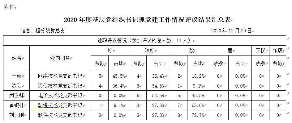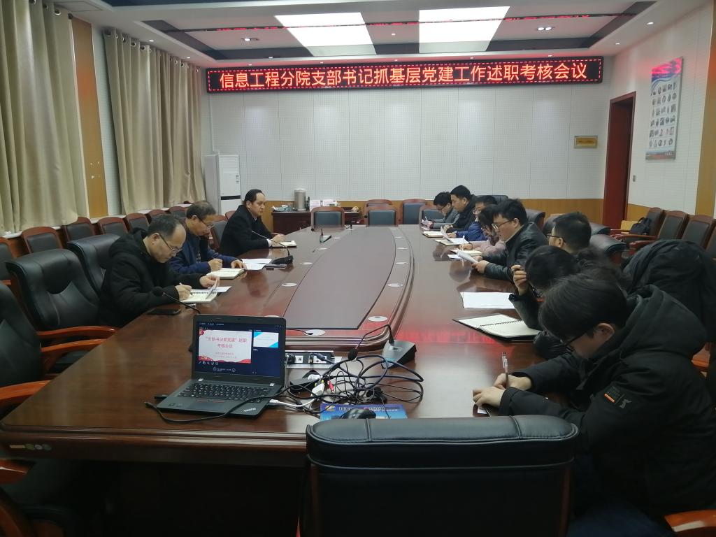 为深入学习贯彻习近平新时代中国特色社会主义思想和党的十九届五中全会精神,全面落实管党治党政治责任,进一步推进全面从严治党向基层延伸,切实提高基层党建工作质量,根据《中共陕西省委教育工委关于开展2020年度高校基层党建述职评议考核工作的通知》(陕教工组办〔2020〕8号)要求,结合学校实际和疫情防控要求,按照学院2020年度基层党组织书记抓党建述职评议考核工作有关事项通知要求,信息工程分院党总支于2020年12月28日,在秦风楼会议室召开了党支部书记抓党建述职测评考核会议,分院党总支委员及各支部书记、教研室主任、副主任参加了会议。