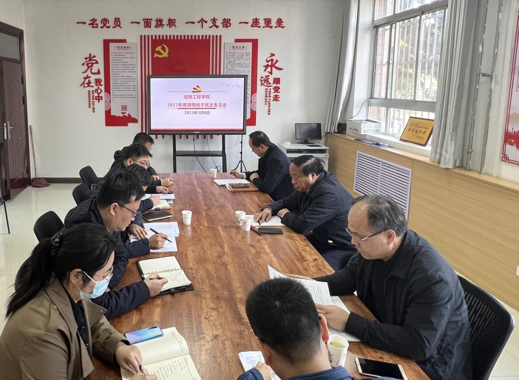 3月8日,信息工程学院党总支在秦风楼一楼会议室召开2022年度领导班子民主生活会。校党委书记王周锁出席会议并讲话,信息工程学院领导班子成员、党总支委员、党支部书记代表参加了会议,会议由信息工程学院党总支副书记吴高潮主持。