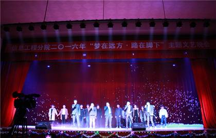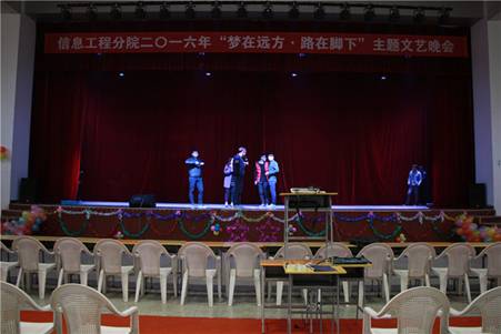经过历时一个多月的悉心准备与紧张排练,11月16日晚七时,信息工程分院2016年度“梦在远方·路在脚下”主题文艺晚会在南校区一卡通活动中心拉开帷幕。