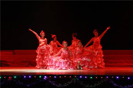 晚会由分院艺术团带来的一场时尚靓丽的传统服饰秀为开场,将古典与现代融合,展示出现代青年对传统文化的理解与演绎;接下来分院梦篮子动漫社用流光溢彩的荧光舞蹈秀将光影的浪漫与动感演绎的生动活泼;合唱《爱,正因为在心中》让“爱”这一永恒的主题随着动听的旋律沁入每一位观众的心里;紧接着,节奏强烈,激情澎湃的搏击操表演将演出现场推向一次高潮,健美的身姿,律动的节拍,有力的动作,响亮的号子,昭示出分院青年学习蓬勃的朝气;搏击操之后,风趣幽默的小品《安全演习》将“安全问题”演绎的诙谐透彻,在逗趣的同时,也提醒着大家“安全第一”;现代舞《帝都》,动作柔美,节奏舒缓;乐器独奏、歌曲联唱悦耳动听;脱口秀《汉语四六级考试》爆笑捧腹;瑜伽《年轮》赏心悦目,静怡而灵动;相声《逗你玩》致敬传统曲艺;民族舞《月缠纱》婉转优雅;独唱《友情岁月》致敬青春;而爵士舞《Daddy》的活力奔放再次感染了全体观众,将青春的澎湃动力完美释放!