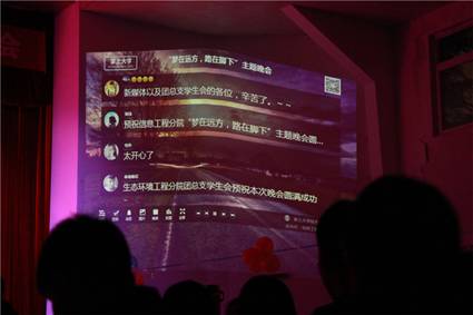 在晚会过程中,增加了微信互动环节,让观众也拉进了晚会的表演内容,使晚会更加贴近同学,在互动环节中,共计产生了50名幸运观众,获得了由信息工程分院团总支发送的纪念品。