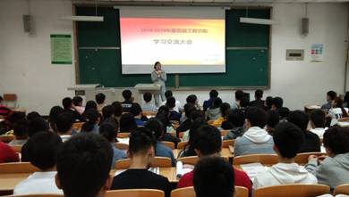 2019年4月14日下午六时,信息工程分院在NOB-103台阶教室召开了学习经验交流演讲赛。参加此次学习经验交流会的有学习成绩优秀奖获得者的16名同学及近150名2018级学生代表。