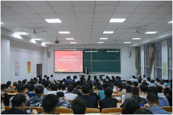 为了加强对在校大学生的教育工作,2018年5月7日晚7点半,杨凌职业技术学院信息工程分院在北校区BOA-121教室举行了“反邪教警示教育报告会”,分院特邀思政部形势与政策教研室主任张宁科老师给大家做报告,参与此次报告会的人员有2016级、2017级先进个人、入党积极分子及各班班委近160人。