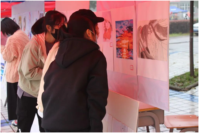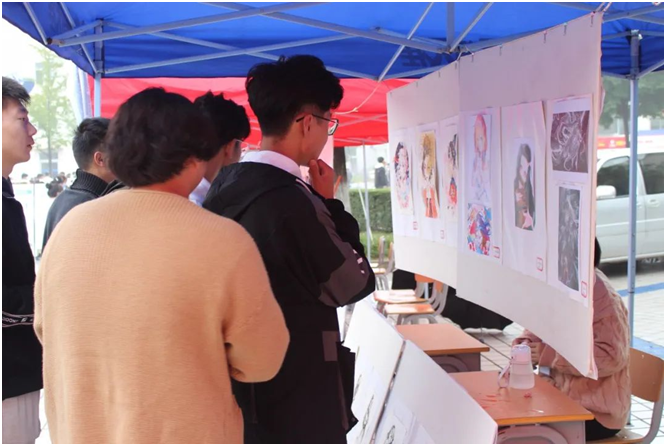 文化节现场分为分院简介区、书画艺术区、摄影作品区、设计作品区和设备体验区。从不同角度展示出了信息工程分院的专业建设成果和同学的实际操作能力。