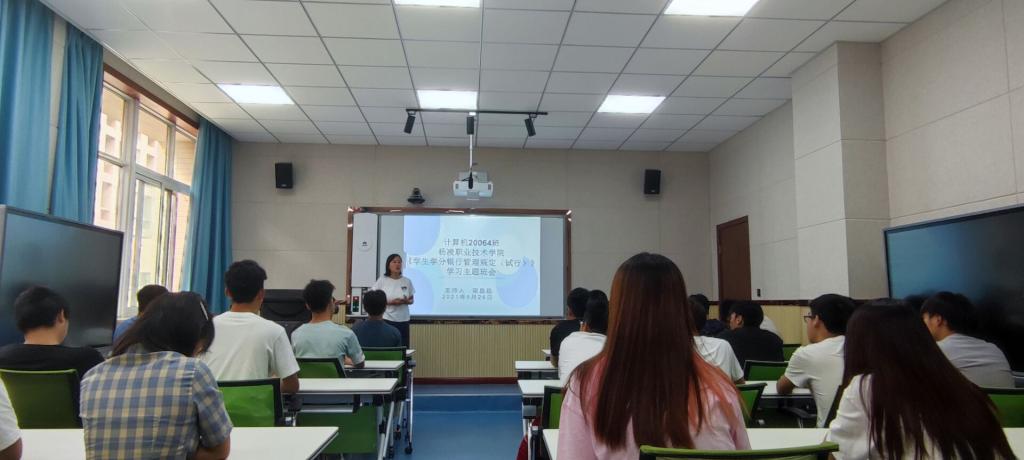 为尊重学生的个性差异,帮助学生树立自信、挖掘学生的潜能、拓展学生的兴趣和爱好,突破传统的学习时间、空间、内容以及专业限制,使每个学生都能在原有的知识、能力和素质基础上得到充分、协调的发展,根据杨凌职业技术学院关于印发《学生学分银行管理规定(试行)》的通知,2021年5月26日16时,计算机20063、20064、20065、20066、20067班全体学生分别在醒钟楼NOA-101、NOC-205教室召开学习研讨《学生学分银行管理规定(试行)》主题班会。