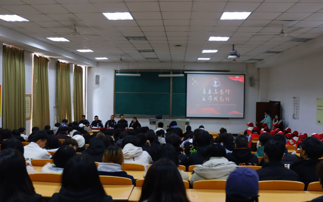 作为学院“2025安全普法实践志愿服务”的开篇之作,本次活动聚焦大学生群体高发的电信网络诈骗问题,通过主题讲座、警民互动、集体宣誓等形式,筑牢青年反诈防线,凝聚志愿服务力量。