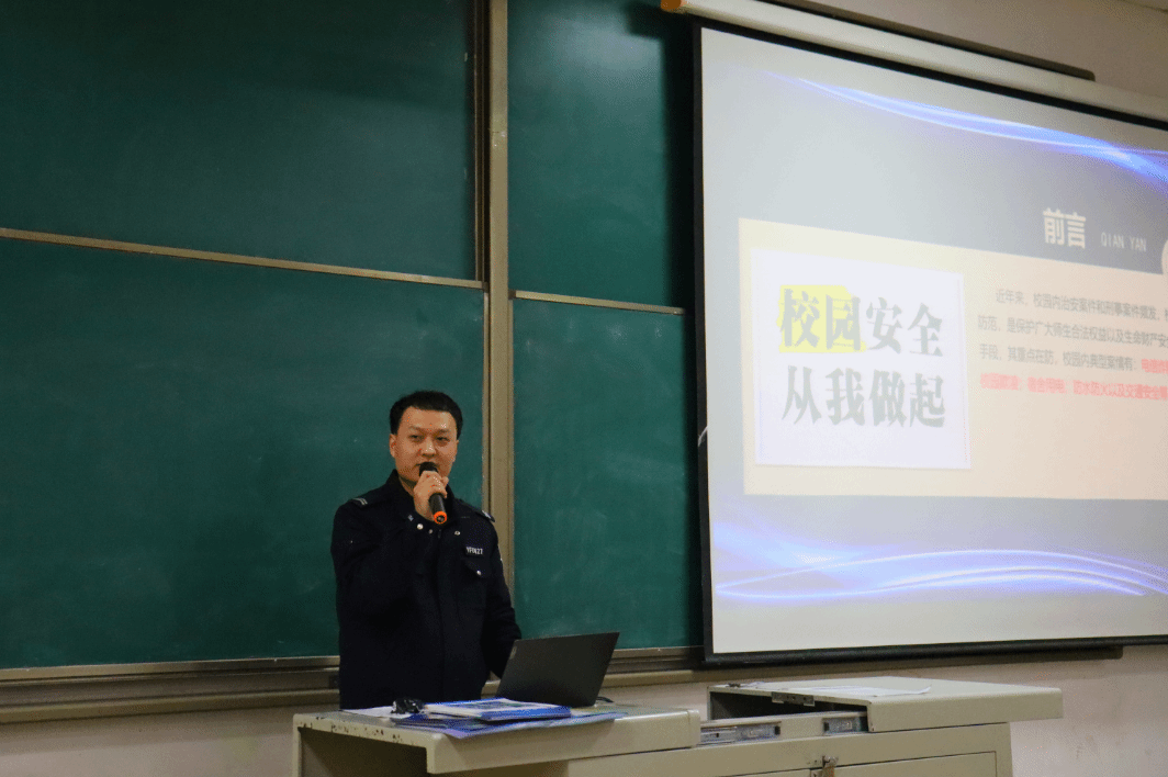 社区民警王涛结合真实案例,深入剖析“网络贷款”“虚假投资”等诈骗手段,并增设现场提问环节,解答学生关于“个人信息泄露应对”“境外来电识别”等热点问题。互动过程中,民警的耐心解答使得同学们将反诈知识入脑入心。