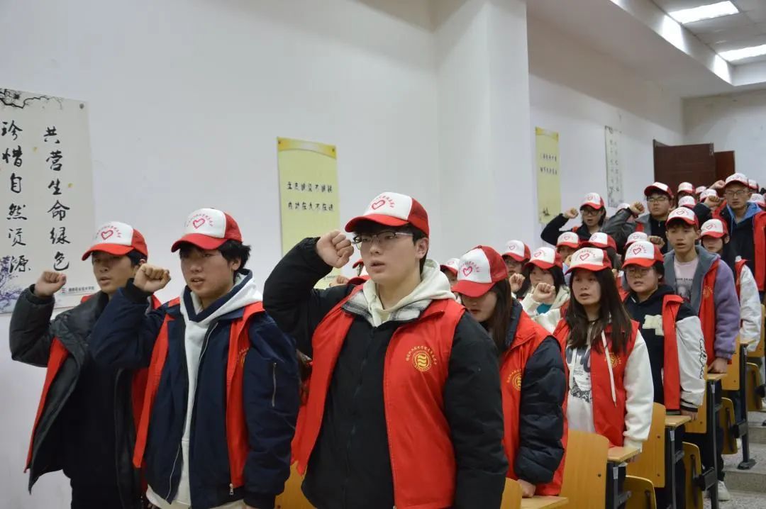 信息工程学院志愿者代表井柯静上台发言,并带领全体志愿者进行宣誓。
