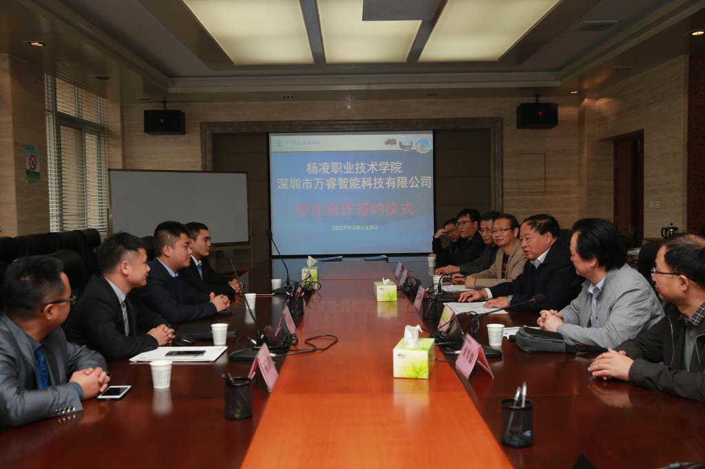 双方表示,校企双方将本着共同发展,资源共享,优势互补的原则,企业在学校建立人才培养基地,学校在企业建立实习就业基地,组建“万睿科技班”,共同拟定培养方案,合作育人。