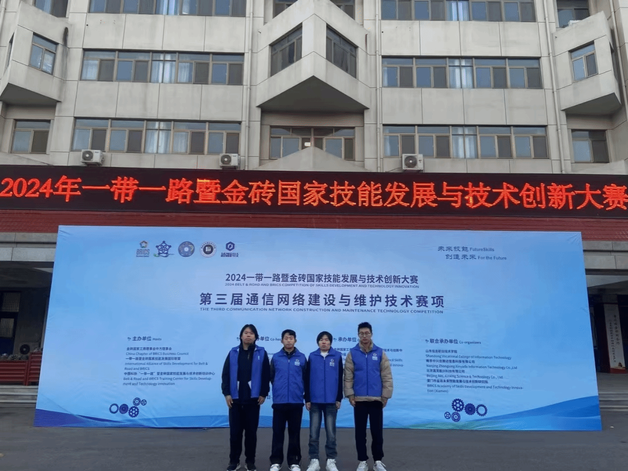 2024年12月7日至8日,2024一带一路暨金砖国家技能发展与技术创新大赛之通信网络建设与维护技术赛项国内赛决赛在山东潍坊开赛。本次大赛共有来自全国各地的110支队伍,220余名选手参加。我校信息工程学院樊勇杰、南疆,王泉龙、杨申同学在此次竞赛中荣获三等奖。