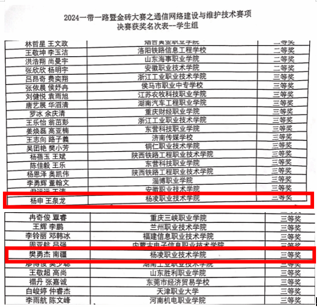 【喜讯】我院学生获一带一路暨金砖国家技能发展与技术创新大赛之通信网络建设与维护技术赛项国内赛决赛三等奖