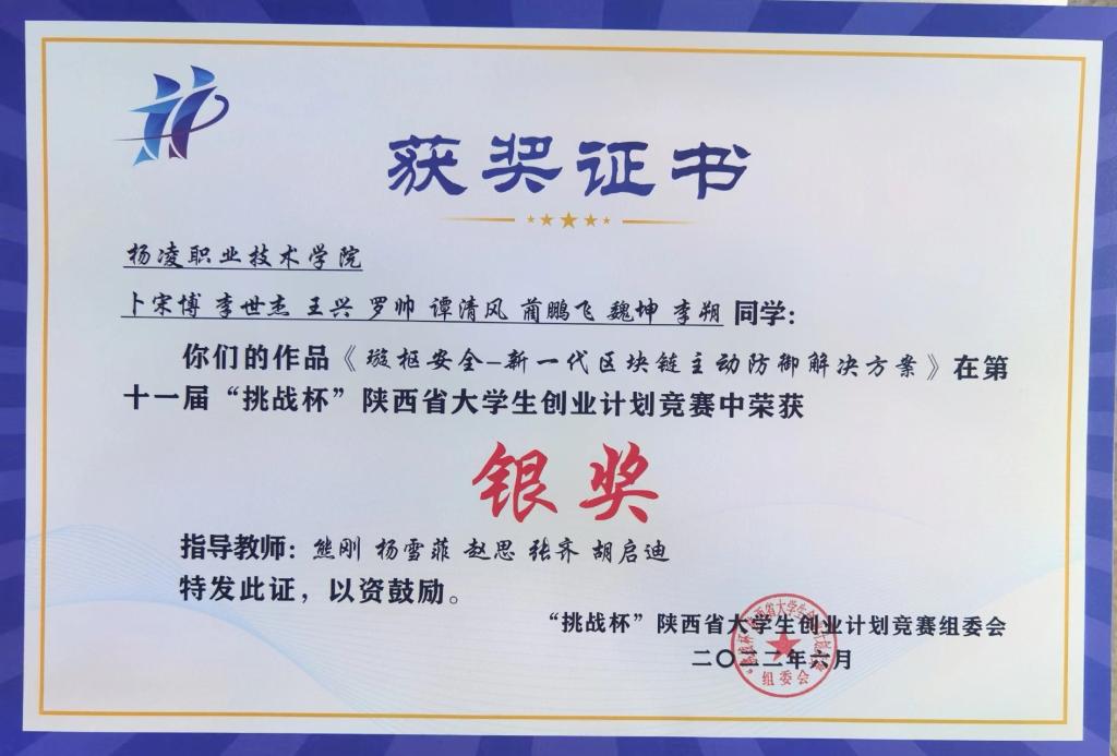 6月25日,由共青团陕西省委、中共陕西省委教育工委、陕西省科学技术协会、陕西省社会科学院、陕西省学生联合会主办,西安理工大学承办的第十一届“挑战杯”陕西省大学生创业计划竞赛圆满落幕。信息工程分院卜宋博、蔺鹏飞、王兴、罗帅、李世杰、谭清风等学生的参赛项目《璇枢安全—新一代区块链主动防御解决方案》在熊刚、杨雪菲、张齐、胡启迪等老师指导下,经过层层角逐、激烈竞争,荣获省赛银奖。