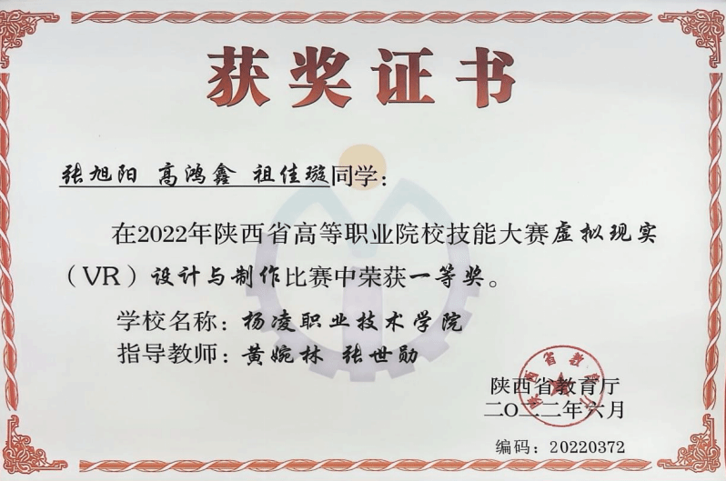 图24 2022年动漫制作技术专业学生获陕西省技能大赛“虚拟现实(VR)设计与制作”一等奖