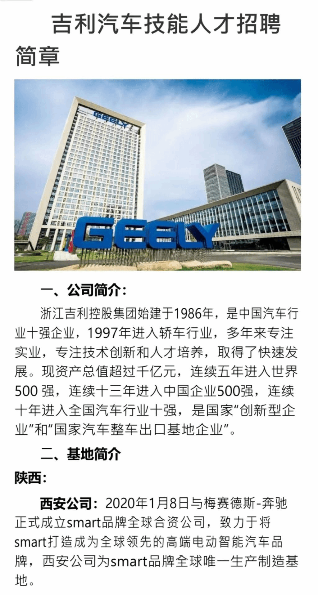 【招聘信息】西安吉利汽车有限公司招聘简章