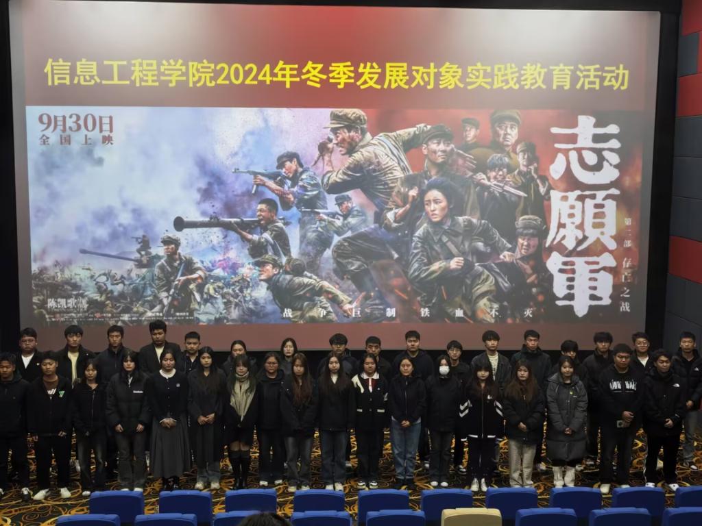 2024年11月17日,信息工程学院党总支组织了一场特别的观影活动,组织了41名学生党员和40名发展对象共同观看电影《志愿军:存亡之战》。此次活动的目的是让学生们通过直观的影像资料,深刻感受历史,继承和发扬红色精神。
