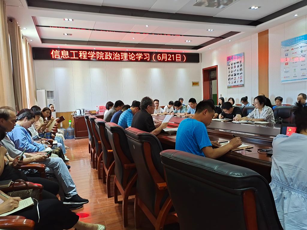 按照学院统一部署,6月21日下午信息工程学院组织全体教职工在秦风楼会议室进行了2021年上半年第十七周政治理论学习,进行了学习讨论活动,会议由信息工程分院党总支副书记吴高潮主持。
