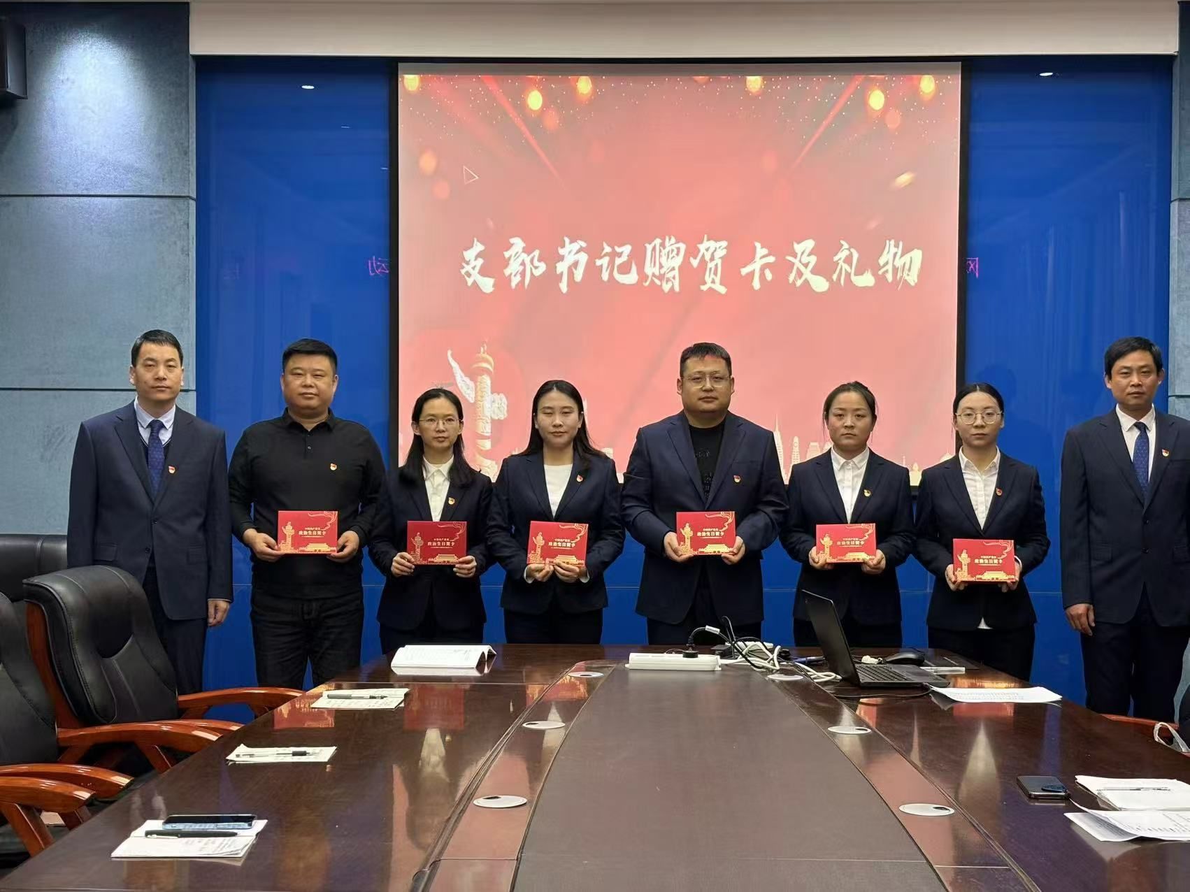 随后,党总支组织委员与支部书记分别为党员同志们赠送了精心设计印有入党誓词和党组织殷切寄语的“政治生日贺卡”,同时为支部党员们还颁发了具有纪念意义的礼物,让每位党员都感受到了党组织的关怀。