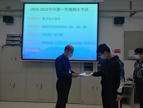 2021年12月30日19:00-21:00,电子20035班在醒钟楼NOD625数字电子技术实训室完成了本学期考试改革课程《数字电子技术》的考核。