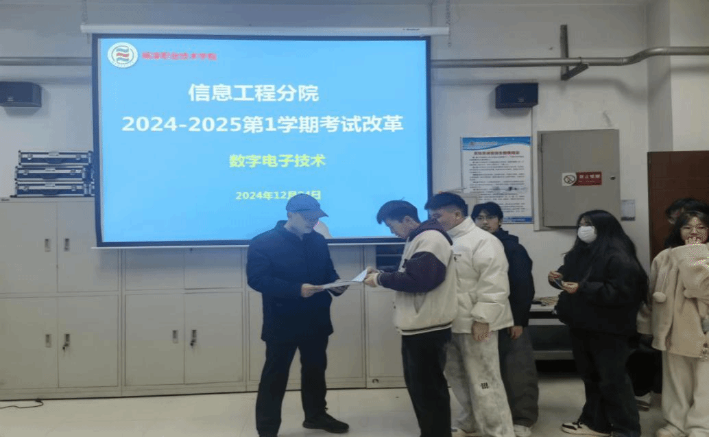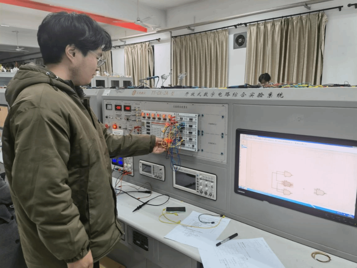 2024年12月24日-25日,2023级应用电子技术专业电子23(039)班和电子23(040)班在醒钟楼NOD625数字电子技术实训室完成了本学期考试改革课程《数字电子技术》的考核。