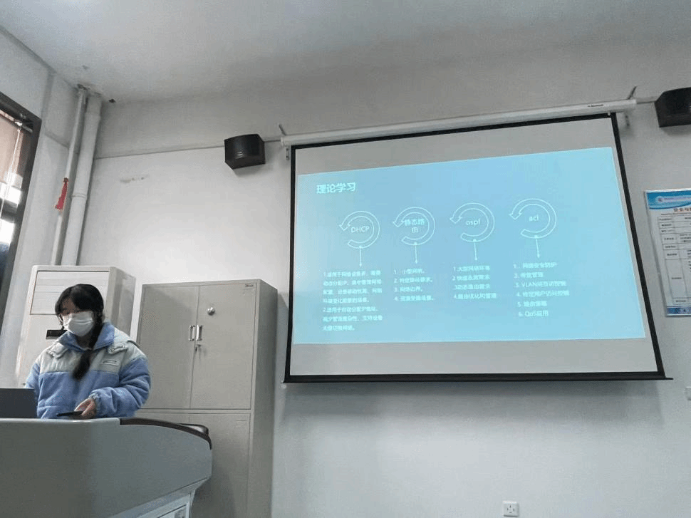 现代通信技术专业《承载传输网络建设综合实训》共分校内实训和校外实训两部分组成。校内进行了为期2周的ENSP实训,通过深入讲解ENSP相关协议,OSPF原理与配置的学习,ACL原理与配置的实操,实现VLAN间通信的实训以及FTP与DHCP工作原理的探究。通过这次校内实训,学生不仅掌握了核心网络技术,还激发了对通信技术的浓厚兴趣,为后续深入学习奠定了坚实基础。