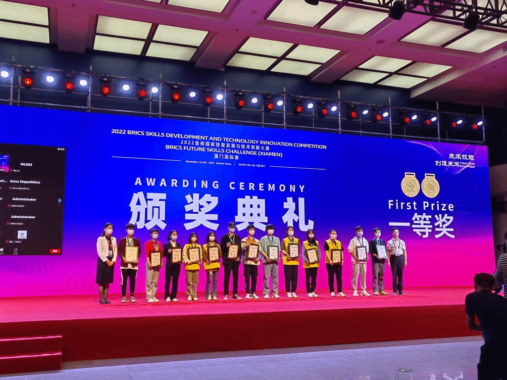 图37 计算机专业学生参加2022年金砖国家技能发展与技术创新大赛一等奖颁奖典礼