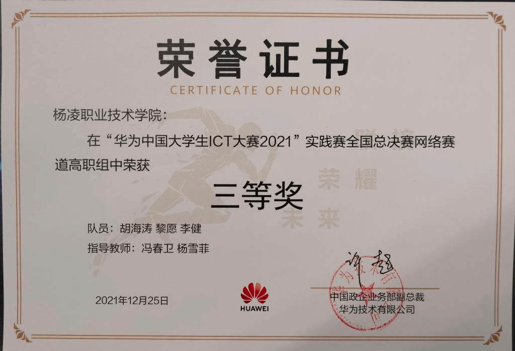 图5 计算机专业学生荣获2021华为ICT大赛全国总决赛三等奖