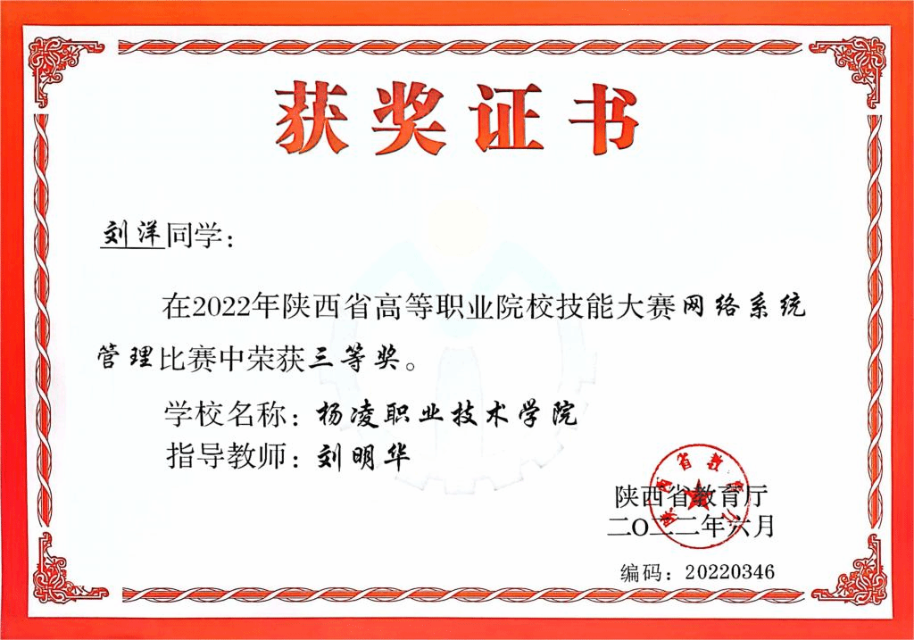 图9 计算机专业学生获陕西省高等职业院校技能大赛-网络系统管理三等奖