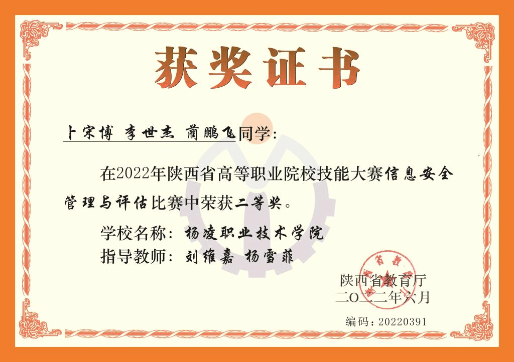 图8 计算机专业学生获陕西省高等职业院校技能大赛-信息安全管理与评估二等奖
